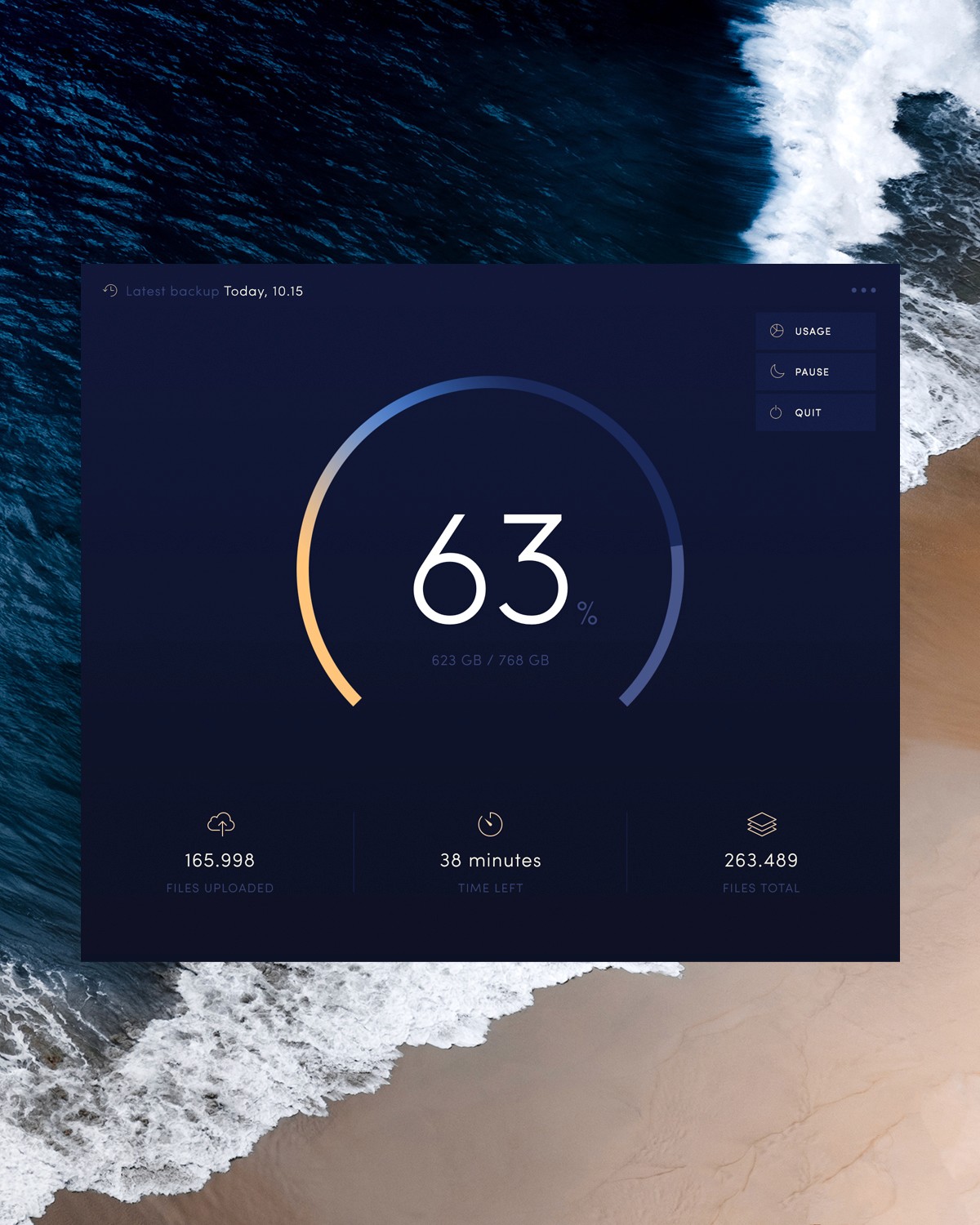 Unit Drive is a product created, designed, and developed by Forma to make backing up your Mac simple, fast, and reliable. It automatically protects all your files – photos, videos, documents, and more – giving users complete peace of mind. With a focus on speed, stability, and ease of use, Unit Drive turns safeguarding your work and memories into a seamless, worry-free experience. The visual design pairs deep, immersive dark surfaces with vibrant, flowing gradients. Transitions between warm golds, electric blues, and subtle violets echo the invisible movement of data, bringing a sense of calm energy to a technical process. The gradients create atmosphere, guide attention, and give the product a distinctive, premium feel beyond typical utility software.